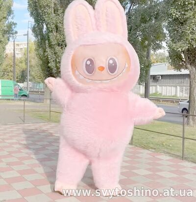 Надувной костюм Лабубу компании Слон изготовлен из мягкого, приятного на ощупь искусственного меха.
