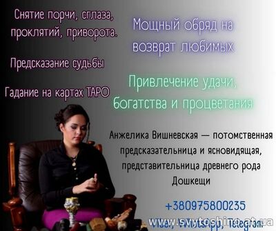 Ясновидящая Киев, гадалка Киев, сильная гадалка, потомственная ясновидящая, предсказание будущего онлайн, гадание Таро онлайн, снять порчу Киев, снять сглаз, снятие венца безбрачия, снять родовое проклятие, люб