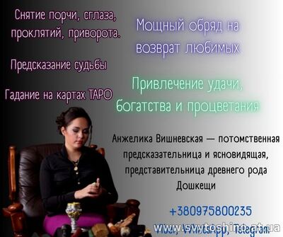 Гадалка Киев, приворот Киев, ясновидящая Киев, предсказательница в Киеве, экстрасенс Киев, магическая помощь в Киеве, ясновидящая Анжелика Вишневская, снятие порчи и сглаза в Киеве, приворот и родовые проклятия